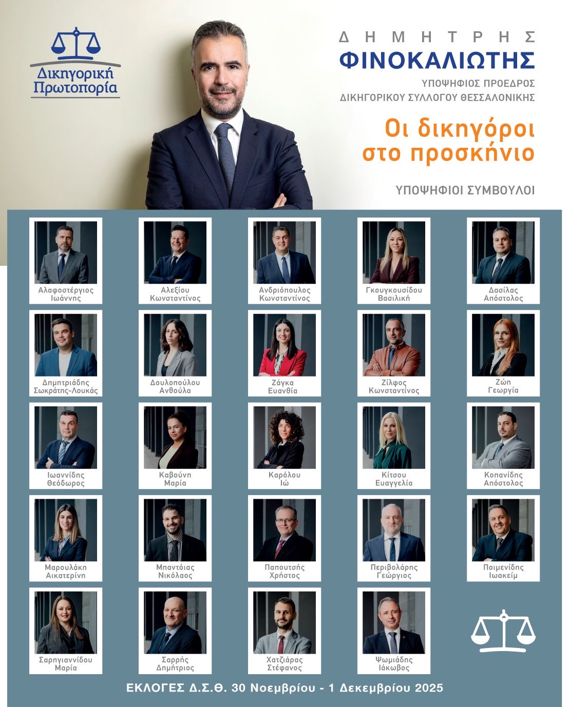 Αρχαιρεσίες ΔΣΘ – Φυλλάδιο συνδυασμού ΔΙΚΗΓΟΡΙΚΗ ΠΡΩΤΟΠΟΡΙΑ με υποψήφιo πρόεδρο τον Δημήτριο Φινοκαλιώτη