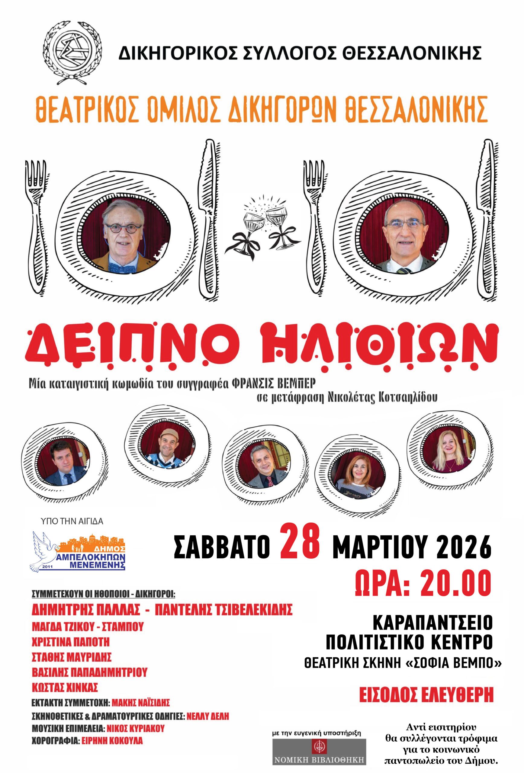 Αρχική > newsletter > ΘΕΑΤΡΙΚΟΣ ΟΜΙΛΟΣ ΔΙΚΗΓΟΡΩΝ ΘΕΣΣΑΛΟΝΙΚΗΣ ΔΕΙΠΝΟ ΗΛΙΘΙΩΝ mobile - ενημέρωση, newsletter, ΕκδηλώσειςΘΕΑΤΡΙΚΟΣ ΟΜΙΛΟΣ ΔΙΚΗΓΟΡΩΝ ΘΕΣΣΑΛΟΝΙΚΗΣ ΔΕΙΠΝΟ ΗΛΙΘΙΩΝ Posted on 27 Μαρτίου 2026 by test lawyer Παρακαλούμε δείτε το συνημμένο Συνημμένα αρχεία: 1000006967-scaled.jpg ΠΑΡΑΤΑΣΗ ΕΓΓΡΑΦΩΝ ΓΙΑ ΣΥΜΜΕΤΟΧΗ ΤΗΣ ΟΜΑΔΑΣ ΔΣΘ ΣΤΟΝ ΕΠΕΤΕΙΑΚΟ 20ο ΔΙΕΘΝΗ ΜΑΡΑΘΩΝΙΟ «ΜΕΓΑΣ ΑΛΕΞΑΝΔΡΟΣ» Καταστροφή αρχείου 2020 του Διοικητικού Εφετείου Θεσσαλονίκης